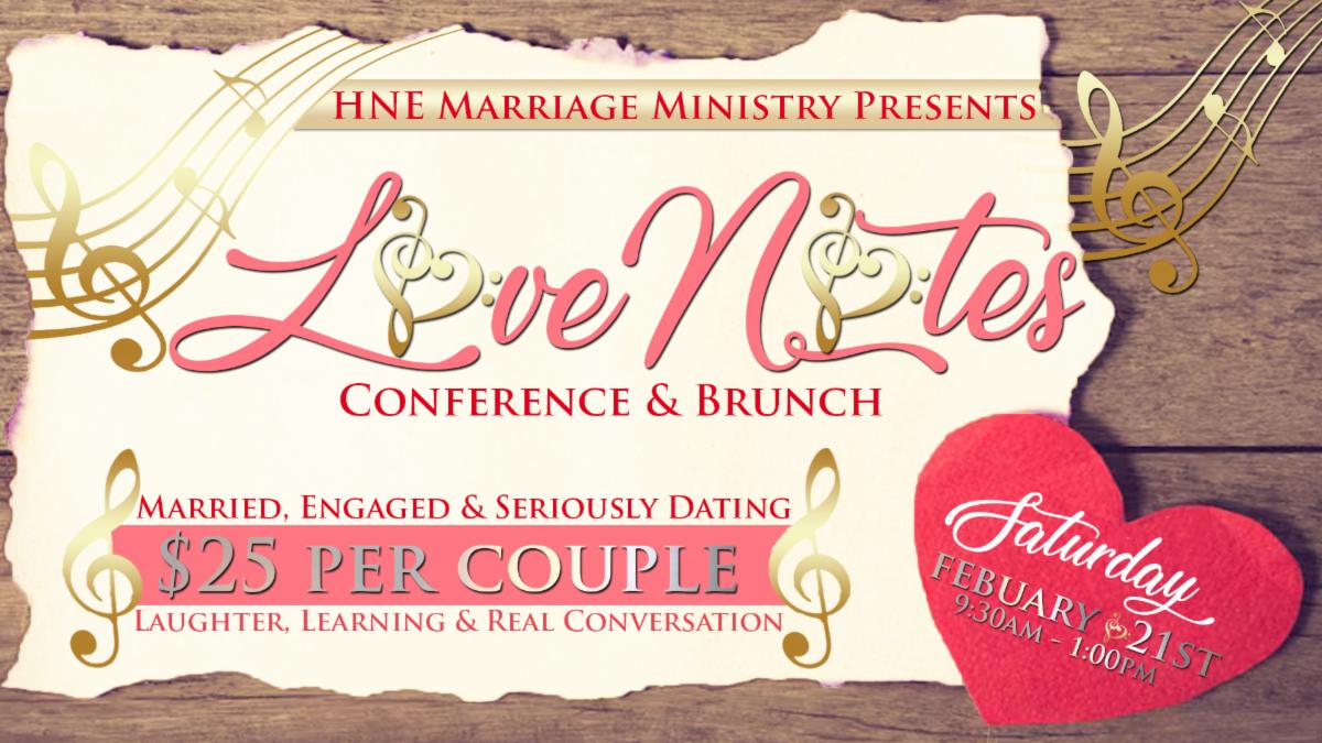 Calling All Love Stories! Are you Married, Engaged, or Seriously Dating with purpose? Then this invitation is especially for you! Hopewell North East Marriage Ministry Presents: Love Notes Brunch Conference…